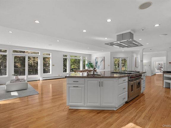 Ensuring privacy with in town convenience, this Pound Ridge home is beautifully sited on over 3 acres with incredible vistas, deeded lake rights, bordering 35 acres of protected Pound Ridge Conservation Land. This thoughtfully designed home combines timeless style with modern comforts.