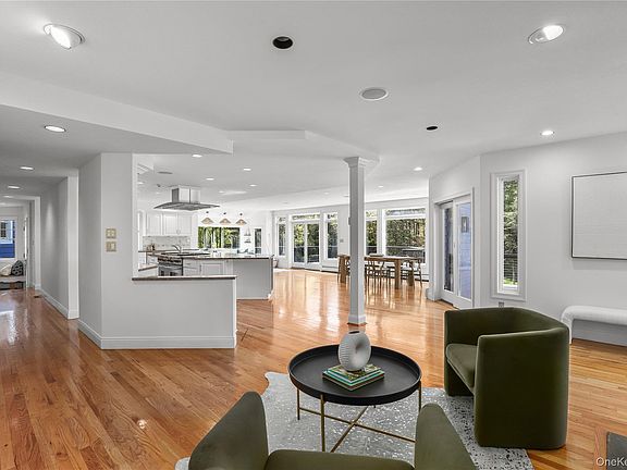 At its heart lies a stunning chef's kitchen with a sunlit breakfast room and adjoining lounge area, perfect for relaxed everyday living and effortless entertaining. A cozy contemporary "keeping room" with fireplace and built-in shelving for a quiet respite. Inside, a classic living room with fireplace and a sprawling family room with striking beam ceilings bathe in natural light, creating warm and inviting gathering spaces. Luxurious primary bedroom/bath, offers a true retreat, complemented by two additional ensuite bedrooms. This home also features completely separate guest quarters and a private office with its own entrance, ideal for today’s lifestyle. Featuring a third floor bonus/playroom/ recreation room with full bath. Additional flex room for exercise/yoga or nanny. Elevated outdoor living on the - brand-new composite deck with sleek tension wire railings seamlessly transitions to a gorgeous bluestone terrace, a perfect way to relax surrounded by natural beauty. Additional highlights include a three-car garage, refined finishes throughout, and the rare sense of space and tranquility that defines the best of Pound Ridge living.