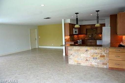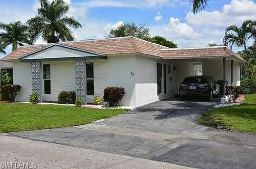ROYAL PARK VILLAS - Detached villa with 2 bedrooms and 2 baths. 1,296 square feet. Open floor plan, updated kitchen with quartz counters and NEW cabinets with NEW Whirlpool appliances, washer/dryer, updated bathrooms with shower/tub in one and shower in the other, French doors leading to outdoor living space, New roof, NEW exterior paint, Screened Lanai, impact windows, LVP flooring and cable ready. 1 covered car port with extra outdoor storage, on the lake, minutes from 5th Avenue, Old Naples, Beaches, Restaurants and Shopping. Available 7/1/16. Annual Lease, NO PETS.