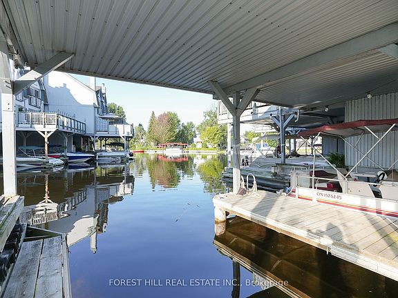 Welcome to This Beautiful End-Unit Waterfront Townhouse Featuring 3 Large Bedrooms & 4 Bathrooms. Enjoy 4 Seasons Living Right on the Water. Bright and Spacious Open Living Area, Perfect for Relaxing or Entertaining. Modern Renovations from the Glass Railing Oak Staircase to the Waterproof Flooring Throughout. Upgraded Custom Kitchen w/ lots of Drawers & Quartz Countertop. Enjoy Stunning Views from the Expansive Walkout SunDeck. Perfect for Family Gatherings and Enjoying Lake Simcoe. Bonus Family Room on the Main Level Offers Direct Access to Your Covered Boat Slip, where you can access your boat right at your house. Enjoying this beautiful moment just sitting next to the water. Retreat to the Master Bedroom, Where You Can Also Enjoy Water Views from the Top to Bottom Sliding Window, Garden Views from Bay Window. Complete with a Walk-Thru Closet and 4 PCs Ensuite. Embrace the Allure of a Real Wood Fireplace, Perfect for Every Season from Summer's Shimmering Waters to Winter's Snow-Covered Lake. This Waterfront Oasis Offers a Carefree Work-Life Balance Lifestyle, with Lawn Maintenance & Snow Plowing Included. Community Centre, Marina, Tennis & Pickleball Courts, Park, and Beach all within Walking Distance. A Short 25-Minute Drive from Orillia and Only 90 Minutes from Toronto. Escape to Your Relaxing Waterfront Lifestyle Today! Move In and Enjoy!!