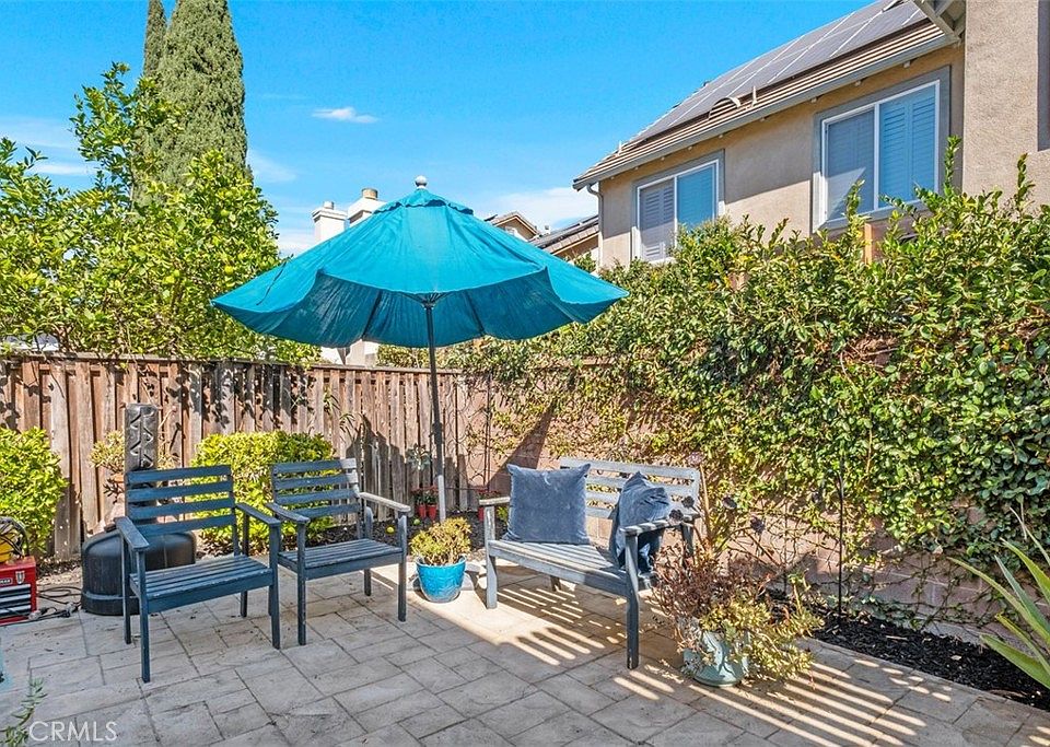 ***Rarely on the market, End unit in Sycamore Grove with large enclosed patio yard!!!*** You don't want to miss this one. Charming end unit home with pride of ownership (original owners). Inviting open floor plan features spacious family room with gas fireplace. Dining room has room for large table. Kitchen is open and features stainless steel appliance, counter seating, recessed light and plenty of counter space and kitchen storage. Convenient downstairs powder room. Glass door leads out to large enclosed, private yard. Yard features concrete patio, vinyl patio cover, artificial grass and beautiful planters. All three bedrooms are spacious and located on second level. Master bedroom has balcony, en-suite bathroom and walk in closet. Recessed lighting. Home has been re-piped with PEX pipes. Convenient upstairs laundry. Attached 2 car garage with direct access and overhead storage. High speed internet included in HOA dues. Resort style amenities including a pool just step away and 12 other pools throughout Ladera Ranch. 4 Clubhouse, 12 additional pools, jacuzzi, miles of hiking trails, dog park, skate park, water park and dozens of community parks. Award winning schools close by. ***Low taxes*** Mello Roos estimated at $1,425/year or under $120/mo.