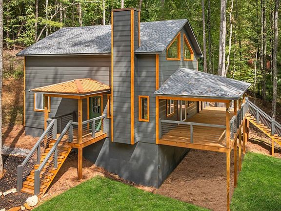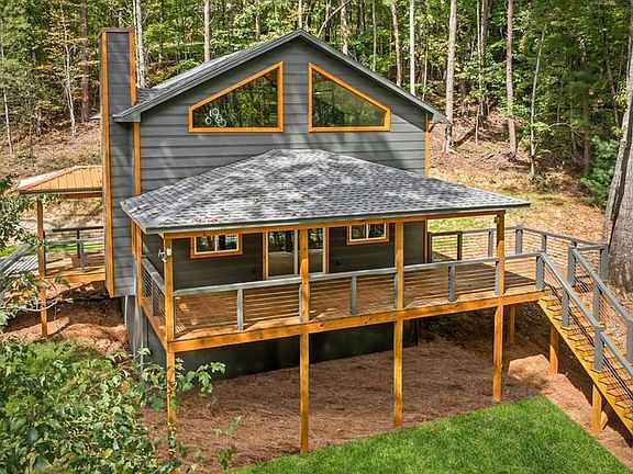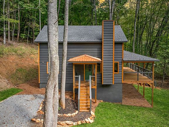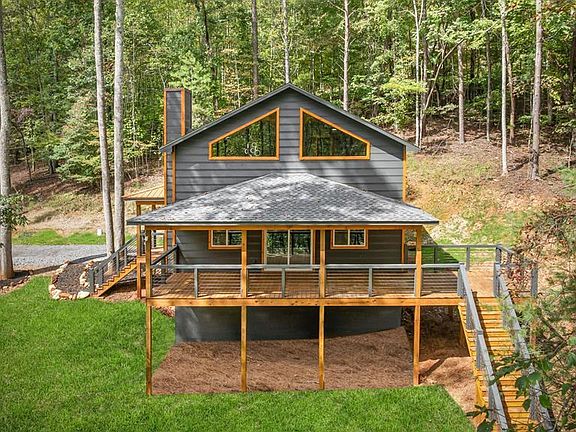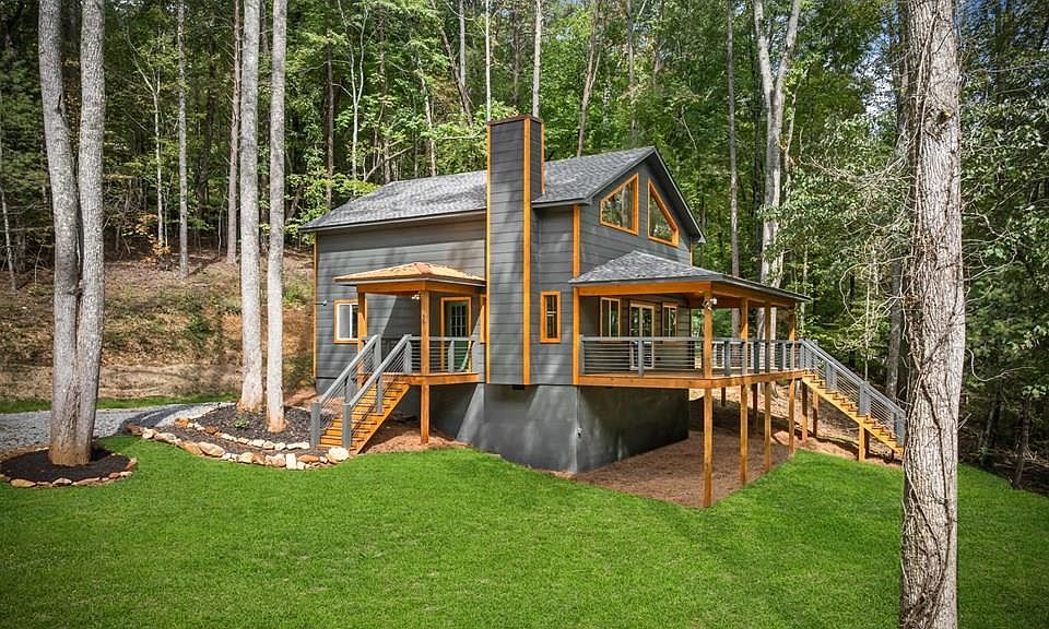 Seize the opportunity to own a piece of the North Georgia mountains with this brand-new 2-bedroom, 2-bathroom smart home with a large open loft used as a flex area such as a game area or additional sleeping space, perfectly situated on a flat 1.19-acre corner lot, offering both seclusion and convenience with a short drive to downtown Blue Ridge. The smart home boasts modern amenities, including LED lighting throughout and luxurious backlit mirrors in the bathrooms. The bright, open floor plan features a cozy fireplace and a large laundry room on the main floor. Both the main-floor bedroom and loft are spacious enough to accommodate a king bed or two queen beds; storage is ample with two large closets on the main floor and three walk-in closets upstairs. Comfort is ensured year-round by a dual-fuel HVAC system with a smart thermostat and a tankless water heater, fueled by a transferable 250lb propane tank. Outside, a large covered deck overlooks a small, serene stream, and the home includes a high-end water filtration system, high speed internet installed, and is pre-wired for exterior security, making this new construction a smart investment and a highly desirable short-term rental property with no restrictions.