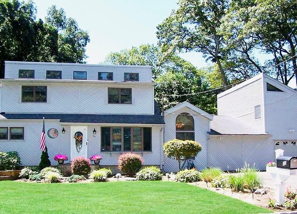 Welcome to this gorgeous Contemporary-style house in Sachem SD with legal detached studio apartment. It offers 4 bedrooms 3 bathrooms, providing ample space for both relaxation and entertaining. open interior highlighted by Vaulted Ceiling, Den with wood burning stove, EIK with marble countertops, stainless steel appliances, GAS cooking, Gleaming hardwood floors. Master bedroom suite with Vaulted ceiling. Detached legal apartment is potential for income. This elegant Contemporary house offers a perfect mix of luxury and comfort. Don't miss this opportunity!