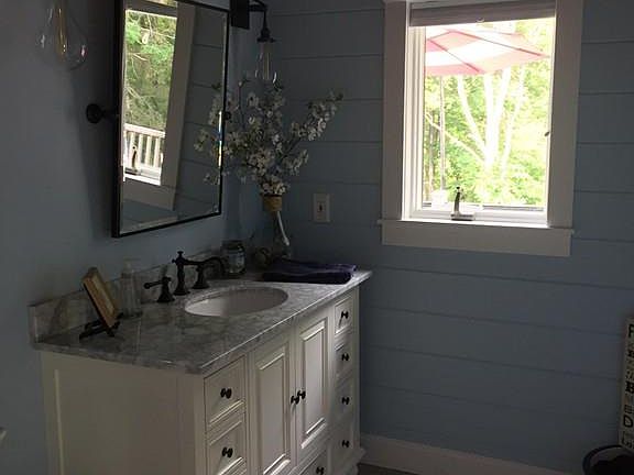 Beautiful, move-in ready home that has been meticulously maintained with fresh paint in 95% of rooms. Complete kitchen gut + remodel in 2014. Downstairs bath gut + remodel in 2016. Major re-design and face-lift with farmers porch added in 2018. New maintenance-free azek railing on huge 44'x14' deck. Front-to-back Master Suite bedroom has gorgeous wide cherry hw, Jack n' Jill bathroom, double shower, and full walk-in closet. Finish third floor with full bath, bedroom and entertainment room. Fenced-in back yard with classic black aluminum railings. Full in-ground sprinkler system. Brand new Rinnai tankless water heater. Great neighborhood and privacy as the back lot is surrounded by protected wetlands. Center grade school and McCarthy Middle School district. Walking distance to downtown Center. Quick access to 495 and Rt. 3.