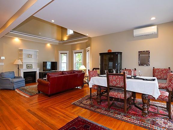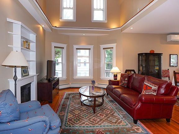 A truly unique condominium in Ball Square area with a dramatic atrium space between living levels to create soaring ceiling height below while giving a loft-like feel to the room above. Situated within .06 mi. to Davis Square T, on a corner lot, it welcomes outdoor light and tree-top views. Entire unit has been newly painted. Full baths on each level, master bath with claw-foot soaking tub, walk-in double shower and skylight, kitchen with granite breakfast/dining bar for less formal dining, gas fireplace for cozy nights and porches front (screened) and back all combine to add charm and comfort to this spacious duplex. There's even a stained glass window in the foyer. Private storage and off-street parking, as well. A wonderful unit!