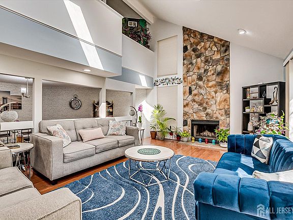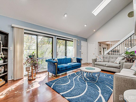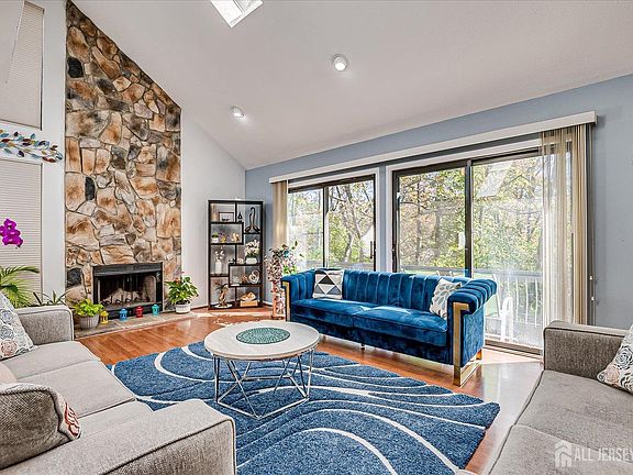 Fully Upgraded 2 bedroom + loft, 2.5 bath End-unit townhome in Southridge Hills. Renovated new Kitchen with High End 42 inch cabinets. Level 5 Granite countertop & modern backsplash. You will love the huge custom Center island where family & friends can hang around. Huge custom pantry, SS appliances & new lighting fixtures with the popcorn ceiling removed. Updated flooring on entire first floor. Living Room has vaulted ceilings with skylights & Glass sliding doors that stream in sunlight. Cozy wood burning fireplace with Floor to ceiling Stone wall surround. Formal Dining adjoins the Living area. Sliders from Kitchen & Living Room step out into the deck area. Deck is maintained by HOA & has been recently replaced & stained. Laundry room with newer washer/Dryer & updated powder room round out the first floor. Upstairs are 2 very spacious bedrooms. All new flooring on this level. Additional Loft which has been covered & currently being used as a third bedroom. Loft can also be used as a family room/work from home area. Both the Full baths have been completely renovated with new floor to ceiling tiles, new vanities, toilets & flooring. Fully finished basement is the perfect man cave with entertainment & gaming area complete with a gym. Room in the basement can be used as an additional guest bedroom. Enjoy Nature & greenery from the deck which overlooks wooded area. 1 car attached garage & 1 assigned parking. Recent updates include HVAC replaced (2022), Water Heater (2024), Whole house painted (2024), Windows (2019), Skylights (2021), Main Water line Valve (2024), EV Charger added (2024). Excellent Blue Ribbon South Brunswick schools. Brooks Crossing Elem, Crossroads North Middle School & South Brunswick High School. Centrally located in close proximity to shopping, NY transit & major Highways. Turnkey home, nothing to do. Move right in time for the Holidays!
