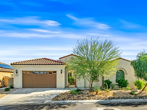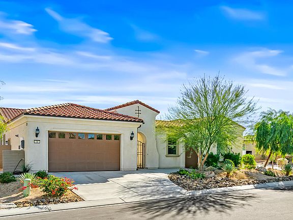 This is the one you've been looking for - offering exceptional value in Del Webb Rancho Mirage, the desert's premier 55+ community. Immaculate in condition, luxuriously appointed, an entertainer's dream, and truly like new. Ideally positioned as the first home upon entering a private cul-de-sac block, this immaculate residence sits on an oversized, ultra-private corner lot in one of the most desirable locations within Del Webb Rancho Mirage. A direct walking path leads straight to the clubhouse, offering exceptional convenience while maintaining privacy. This beautifully upgraded and pristine 'Journey' floor plan offers generous scale, an open layout, and light-filled interiors. The home feels as though it has never been lived in, reflecting meticulous care and exceptional condition throughout. The expansive open-concept kitchen anchors the living space and features high-quality cabinetry, quartz countertops, KitchenAid appliances, and a walk-in butler's pantry with wine refrigerator. The spacious owner's suite has been thoughtfully elongated and includes dual vanity areas and a large walk-in shower. A separate two-bedroom guest suite with its own exterior entrance creates the feel of an attached casita. A large bonus room offers versatile use as a formal dining room, media room, or home office. The main living areas feature faux wood-grain wide-plank porcelain tile flooring, while the bedrooms feature high-end carpeting. Additional highlights include custom cabinetry in the guest bedroom and garage, an oversized laundry room with sink and folding area, and smart-home technology allowing remote control of the security system, door locks, thermostats, and pool equipment. The very private backyard is designed for entertaining, featuring a large covered patio, outdoor kitchen with built-in BBQ and plumbed bar sink, and a saltwater pool and spa with waterfalls and a custom fire pit. Low-maintenance desert landscaping completes the space. The oversized two-car garage plus golf-cart garage includes a Level-2 EV charger, mini-split A/C, tankless water heater, and a Pelican salt-free whole-home water filtration and UV system. Energy efficiency is enhanced by 33 owned solar panels, grandfathered into NEM 2.0. Del Webb Rancho Mirage is a premier 55+ gated community offering pools, spas, pickleball, tennis, putting greens, fitness center, golf simulator, clubhouse, ballroom, and more. Best of all You own the land (no land lease) and enjoy low HOA fees.