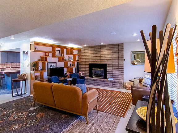 This retro chic three-bedroom home has a Cal King bedroom suite with double vanity sinks, plenty of counter space and mirrors, and a marble soaking tub; a queen bedroom with built-in shelving and working space; and a third bedroom set up as an office with a wood desk and convertible queen couch. All three bedrooms have massive closet space! Your fully equipped kitchen has everything you could need for all your meals. The spacious open Dining and Living Area have a formal dining table that can sit up to 10 although it is set for four; smart snappy rugs, lamps, couches and built-ins reflecting the care that was put into the original building of the house. This isn't cookie-cutter-- there's soul here to match the glory of the natural areas all around you.