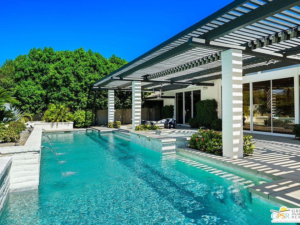 Welcome to this stunning luxury home, where timeless elegance meets modern sophistication. From the moment you arrive, you'll be captivated by its grand presence, impeccable craftsmanship and resort-style amenities designed for both comfort and entertaining.Step inside to soaring ceilings, Terrazzo tile floors, expansive windows that flood the home with natural light and an open concept floor plan that blends seamlessly from one space to the next. The chef's kitchen is truly outstanding, featuring custom cabinetry, a Walker Zanger backsplash, quartz countertops, and high-end Decor appliances, including a 48" range with a steam oven, two dishwashers, and a chef's sink. Stylish Kelly Wearstler pendant lights add a designer touch. The dining area and intimate breakfast nook provide flexible dining options. Retreat to the primary suite, a true sanctuary featuring a walk-in closet, a secondary closet, and built in dresser. Two additional spacious en-suite bedrooms provide luxurious accommodations for family and guests. A versatile office/media room with custom cabinetry can be converted into a fourth bedroom. Outdoors, the meticulously landscaped grounds showcase a sparkling pool and Spa, lounge areas, and an outdoor kitchen for unforgettable entertaining. Every detail of this home was designed with sophistication, comfort, and desert lifestyle in mind. This is more than a home it's a statement of luxury living.