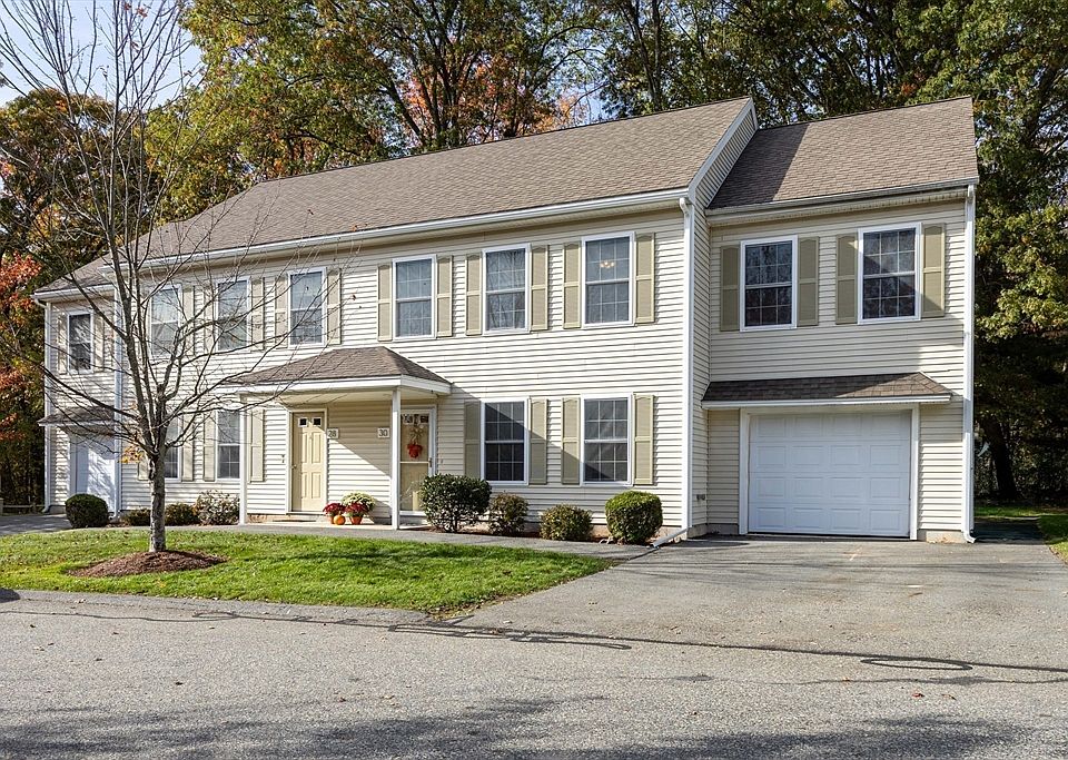Welcome to McKenna Woods- a desirable, rarely available community nestled in a private wooded setting. This spacious 3 BR, 2.5 bath townhome offers an ideal blend of comfort & convenience. The kitchen features SS appliances, granite counters, & direct access to the garage. The slider opens to a private patio overlooking a peaceful wooded area-ideal for morning coffee and evening relaxation. The freshly painted living and dining areas feature attractive wainscoating that adds charm & character. The living room has new wood-look luxury vinyl plank flooring offering both durability & a modern aesthetic. The 2nd floor features 3 generous bedrooms, including a primary suite with a walk-in closet & private bath, plus laundry in the main bath. The large 3rd floor bonus room (35x17) provides exceptional flexibilty as a home office, family room or playroom. Ideally located close to MBTA Station for easy commuting, quick access to Routes 3, 93 & 495. Close to shopping, dining & tax-free NH.