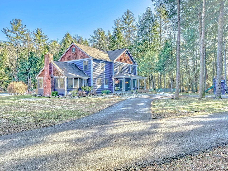 Refined, timeless and elegant, describe this 4 bedroom, 2 1/2 bath, gated country estate. The 7.2 acres are completely private and deer fenced to preserve the landscaping. Pass the gate and appreciate the paved road and circular drive.  Wide-planked wood floors on the entire main level complete the timeless and understated "Farmhouse Contempo" feel. The kitchen is sure to please, with white cabinetry and marble countertops along with a handsome matching center island. There are 2 pantries, top of the line stainless steel appliances, and a 6 burner gas range.   The flow of the rooms works perfectly for entertaining and comfort, with TWO wood burning fireplaces!  Recessed wall speakers will accommodate any sound system. Upstairs the 4 bedrooms are nicely scaled. Ensuite has 2 separate built-in closets divided by window seat with drawers underneath. Sleek marble tub divides the 2 vanity sinks for individual grooming space-opposite the the walk-in shower and private toilet room. Hall bathroom is equally stylish and spacious.  Backyard porch and pool are surrounded by bluestone and greenery. A site prepped with electric just waiting for your new hot tub delivery. No expense has been spared by the current owner who has made numerous upgrades, including a commercial-grade furnace to support any future home addition. Huge finished basement is well insulated, has gorgeous laminate wood flooring, many special upgrades and even acoustic style ceiling tiles, so musicians have their dedicated space too. There is too much to write about here, so come have a tour! Designed by a local Hudson Valley Architect, this house is an absolute classy gem, and being sold fully furnished and turn-key!