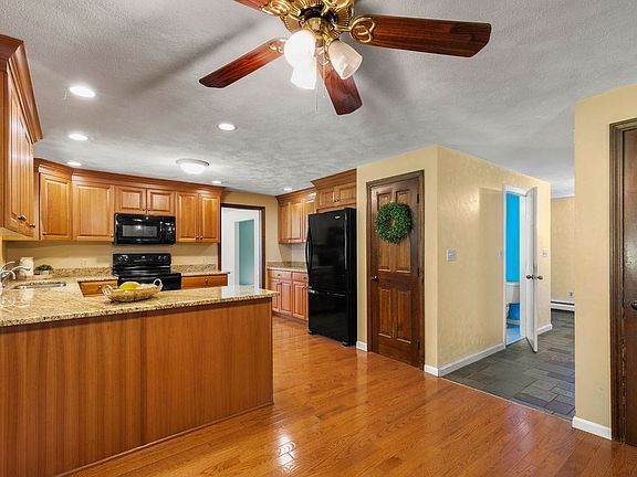 Come see this Spectacularly newly listed updated Gambrel, located on an acre in a highly desirable neighborhood, views of over 600 acres of state forest. Remodeled kitchen w/ custom updated cabinetry, granite counters, hardwood floors, appliances (stay as gifts less than 5 years old), which opens up to the sunny fire-placed (woodburning) family room with cathedral ceilings. Crown molding, bead board trim & wainscoting enhance the quality feel in dining room. Newer updates include, newer boiler & tank (2020), new windows (2008), updated primary bath (2013), updated main bath w/double sink (2014), a/c & heat pumps (2017), solar & roof (2011), freshly painted in most rooms (2023), vinyl sided. Enjoy the scenic back yard and gorgeous landscaping while entertaining family & friends on 3-season enclosed porch. Fenced in backyard that complements the exterior. Close to CC, hiking trails, & shopping!