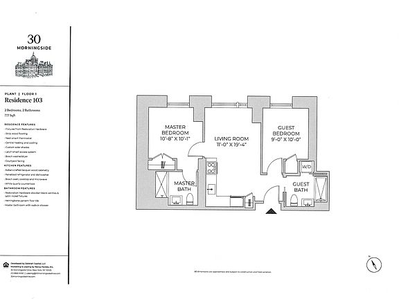 Built between 1896 and 1928 and now a designated historical landmark, the buildings of 30 Morningside were first designed by noted architect Ernest Flagg and reimagined by award-winning architect CetraRuddy. The Beaux Arts quintetfour pavilion towers and central carriage houseexemplify eclectic turn-of-the-century French style with classical lines and symmetry accented with bravura gothic flourishes. All of 30 Morningside's original finishes, limestone facade, wrought iron ornamentals, and verdigris, have been meticulously conserved and restored to their Gilded Age grandeur.