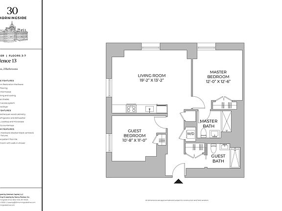 Built between 1896 and 1928 and now a designated historical landmark, the buildings of 30 Morningside were first designed by noted architect Ernest Flagg and reimagined by award-winning architect CetraRuddy. The Beaux Arts quintetfour pavilion towers and central carriage houseexemplify eclectic turn-of-the-century French style with classical lines and symmetry accented with bravura gothic flourishes. All of 30 Morningside's original finishes, limestone facade, wrought iron ornamentals, and verdigris, have been meticulously conserved and restored to their Gilded Age grandeur.