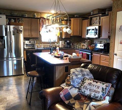 Beautiful views of the fields in a private setting, 2 car carport, home was built in 2014 with a poured full foundation, OFA heat, central air, first floor laundry room with utility sink and additional cabinets for storage and room for additional refrigerator, main bedroom has it's own bath with a garden tub, double vanity and separate shower, large kitchen with island and butcher block top, counter tops have ceramic tile trim, desk area and pantry. Enjoy the front covered porch and views of the fields and mountains for your peaceful views. New well, pump and connection was completed January 2022. STRODES MILLS AREA! Manufactured Doublewide with quality upgrades.