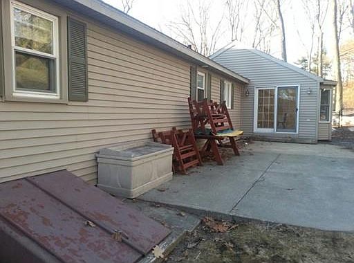 Terrific ranch home in a great location: close to schools, highways and town activities. The bright kitchen is open to a 12X22 cathedral ceiling dining room or family room with French doors to a large patio. The kitchen includes a breakfast bar along with an additional eating or sitting area. Enjoy plenty of storage and cabinet space, easy cooking and a built-in desk. Additional home features include an updated full bath, living room with lots of windows, 3 good size bedrooms and an attached 1 car garage. The partially finished basement provides approx. 400 sq ft. of additional living space and offers a tile floor, built-in bar and entry/exit thru the bulkhead. The unfinished basement has a separate storage and shelving room and a full laundry room. The great corner lot has a fenced-in back yard (perfect for pets and kids) with a shed and a basketball court! And this property is one of the few in town that has a newly installed gas line at the street.