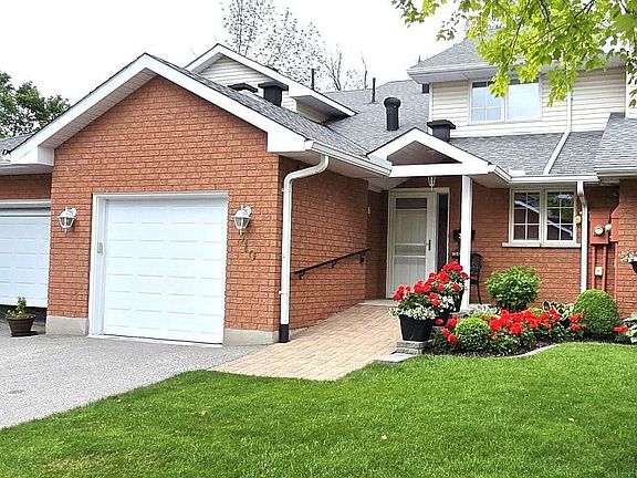 Only a handful of condos in the Leacock Village back onto beautiful green space, THIS IS ONE OF THOSE HOMES! Home is very well maintained, updated & resided in by original owner! Wonderful main floor living & more! Enter foyer, lovely flagstone floor, plenty of room for greeting guests and removing coats & footwear. Large closet & 2 pc bath with laundry just around the corner, access to one car garage, great for entering with groceries during inclement weather. Well appointed kitchen, plenty of high end maple cupboards, granite counters, has been updated with multiple task lighting, spacious enough for table & chairs. Open to large formal dining area makes it a breeze for entertaining. (Gorgeous oak hardwood floors). Move into the living room, cathedral ceiling & wonderful green space views where you can step through the French door & enjoy roomy patio area. Super spot for morning coffee/afternoon beverage, BBQ & outdoor entertaining. Large main floor principal bedroom, private door to patio & big window to enjoy same great views. Good sized 4 piece ensuite bath. Upper level has a bright & spacious sitting room/den with gas fireplace. Wonderful office area (overlooking main floor living space) with gorgeous built in oak desk unit. Good sized 2nd bedroom, ready for guests or use of choice as well as a spacious 3 piece bath. Lower level is a dream for the handy man/woman, included is a woodworking workshop, great for projects & crafts. There is also a handy access door from garage to the basement for project materials as well as a 2 piece bathroom, built in cedar closet & plenty of space for storage. This beautiful home has ease of access to the front door with brick walkway ramp instead of stairs. Condo fee includes lawn care, snow removal, TV/phone/internet. There is a community centre for Leacock Community Village residence, access to walking trails, amenities are close at hand in the beautiful City of Orillia!