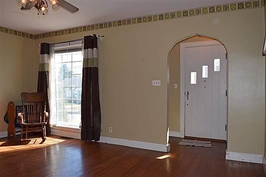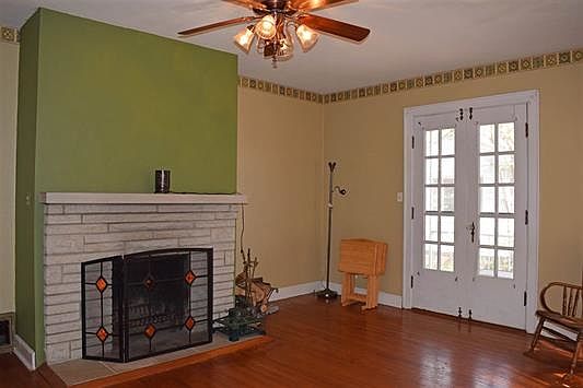 Welcome to this adorable updated 3 bedroom, 1 bath home with a 2 car detached garage. Upon entering you will find a nice sized foyer with an arched doorway which leads to the living room that features a stone wood fireplace, picture window to allow for natural lighting, ceiling fan, original hardwood floors and French doors to the open side porch. The kitchen offers tiled flooring, breakfast bar, decorative window shutters, celling fan and wainscoting. The dining area is open to the kitchen with hardwood floors and a sliding door with access to the backyard. On the main level you will also find 2 spacious bedrooms with large closets. Down the hall there is also full bathroom with wainscoting, linen closet, and drawers. The upstairs can be used for a large master bedroom, living room, play room or man cave. There is original knotty pine paneling, original hardwood flooring, several closets and built-in bookshelves. Downstairs is a full unfinished basement perfect for any extra storage you may need. Step out back to enjoy the private back yard.