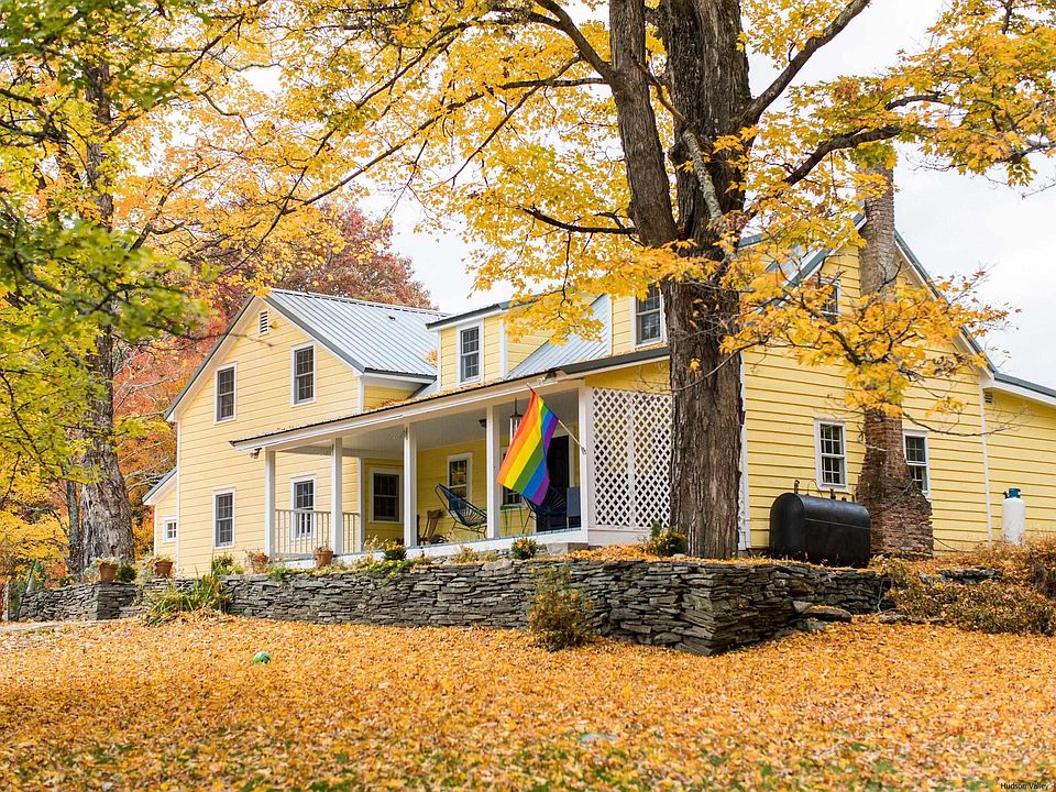 QUINTESSENTIAL COUNTRY RETREAT- Set well off the road and nestled on 32+ picturesque acres of lush rolling meadows and pristine woodlands, discover this smartly updated and beautifully maintained c. 1862 classic clapboard farmhouse. Truly an oasis of serenity and privacy in a prime location yet just minutes to the shops and restaurants of historic Stone Ridge village and High Falls hamlet. The eminently livable floor plan perfectly melds old house charm - beamed ceilings, amazing burnished wide board floors, wainscotting - with an abundance of modern amenities in a distinctly "country chic" design esthetic that welcomes you at the front door. The gracefully proportioned floor plan features a superlative "dine-in" kitchen with a cozy wood burning stove where the chef gets to enjoy the party while preparing farm-to-table cookery from the abundant local farm markets. French doors open to a wrap around veranda beckoning al fresco dining and easy warm weather BBQs. Family and friends are easily and comfortably accommodated in 4 spacious bedrooms including a desirable ensuite on the main level and another ensuite upstairs with French doors to a private deck overlooking bucolic meadow vistas framed by impressive hand laid stone walls. Additional rooms offer the opportunity for a home office, den/library, and nooks to cozy up with a good book. Radiant heating and ductless AC units keep you comfortable in all the glorious Hudson Valley seasons. This "rare find" estate size parcel in a sought after location offers abundant opportunity to develop an amenity rich environment - pool, pool house, tennis court, studio, horses, gardens - as well as room to roam the natural riches of your own retreat accompanied by nothing but the birds and the windsong. RELAX.