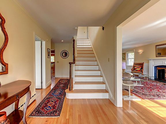 Stunning mid-century center-hall brick Colonial ideally situated in the lovely Grotto area on a quiet dead-end street. Sunny, spacious, and open. Oak hardwood floors throughout. Living room with a handsome gas fireplace is open to the dining room area. Custom cook's kitchen with lots of cabinetry, granite counters, and new stainless appliances is open to the charming breakfast/sunroom featuring another gas fireplace, an exposed brick wall, a vaulted wood ceiling, a skylight, and sliders out to the stone patio. The separate family room has a wall of lovely built-in bookcases. Convenient 1st floor laundry area and attached 2-car garage with an automatic door opener. Terrific master suite with a recently redone bathroom and a walk-in closet. Updated mechanicals including central air-conditioning. Delightfully landscaped and fenced backyard. A block from Blackstone Blvd with its popular walking path and bike lane, and also an easy walk to all the fun shops and restaurants of Hope Village.