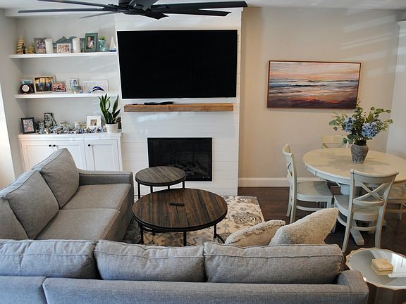 Welcome to Brookside! This turn-key end-unit townhome, built in 2023, has a bright and open floor plan. The first level features beautiful hard wood floors, fireplaced living area with built-in custom cabinetry, large kitchen island with plenty of counter spaces, and stainless steel appliances. A half bath with laundry completes the first floor space. Second floor features include 2 spacious bedrooms with large closets and a full bath. The finished basement is perfect for a media room or home office. Unit comes with 2 parking spaces. Low HOA. Convenient to highways, shopping and restaurants.