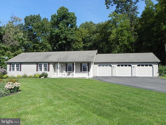 Like new 2004 rancher on one beautiful landscaped acre that backs up to woods. Overlooks scenic Quaker Valley farmland. Views are breathtaking. Sellers have installed all new hardwood floors throughout, replaced all kitchen cabinets, added quartz counters and built a 16X18 family room with gas fireplace and cathedral ceiling. Floor plan is partially open. Formal living room; dining/kitchen combo is open to living room and family room. Wide hallway leads to primary bedroom and bath with walk-in closets; two additional bedrooms and separate laundry room. Smallest bedroom currently being used as a den. Full basement with 9' ceilings can be finished for more space. Beautiful home with fabulous location.