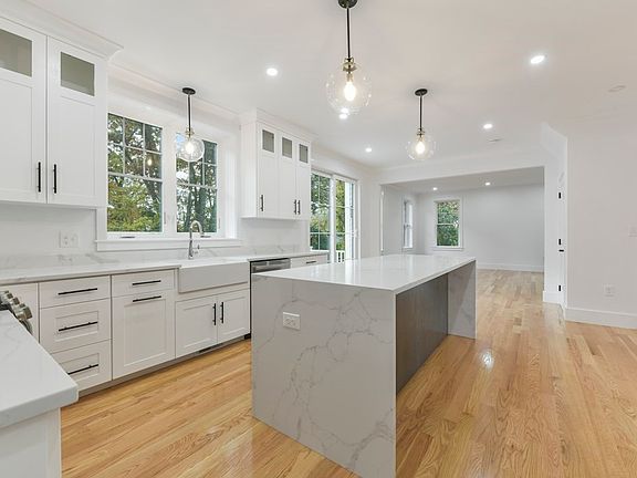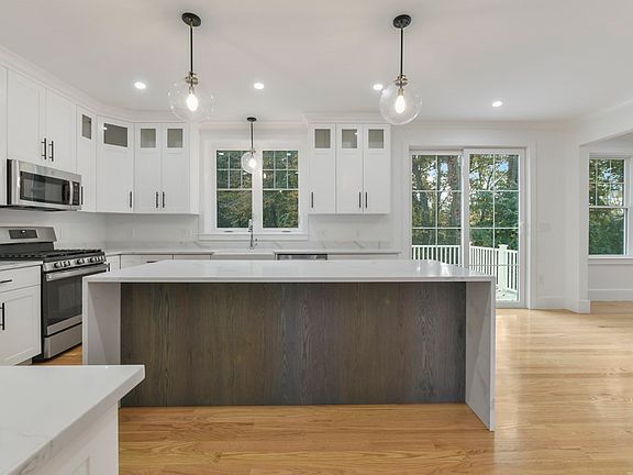 This brand new construction home is complete and ready for occupancy. First floor features large living room with double-room fireplace and built ins, first floor office, mudroom with half bath, beautiful dining room, large kitchen with stainless steel appliances, quartz counters and sliding door off of eating area on to deck. Second Floor features primary bedroom with extra high ceilings, walk in closet with builtins and private bathroom, three additional bedrooms, two more bathrooms and laundry room with sink and storage space. Professionally landscaped yard, walking distance to train, legacy place and Dedham Square. Oakdale school district. One year builders warranty.