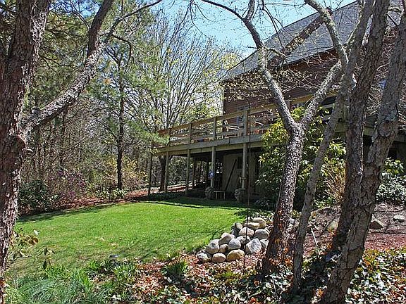 Warmth of wood and pond front make this special post and beam Contemporary Cape a rare offering in village of Cotuit. Offering 3 BR up, and total of 9+ rooms, the floor plan for main living area is open and airy-beams,cathedral ceilings & skylights. For a different feel step into the Family Room with sun pouring in, white woodwork and a gorgeous fieldstone fireplace. Hardwood floors, Andersen windows, granite counter kitchen and other improvements make this a much newer home than its 'build' date. Gas stove for storm proof heat. A/C. 2x6 constr. Lovely pond for swim, fish & paddle. Walk to Cotuit village and bike to beaches and boating-in a calm, quiet setting that we dream about on Cape Cod. Much to see.