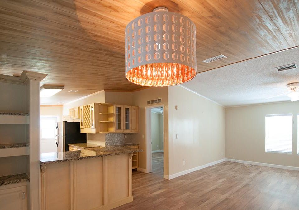 Elevated islandGranite countertopsExcellent floor planWasher and dryerWood covered ceilingWall to wall tileCustom cabinets