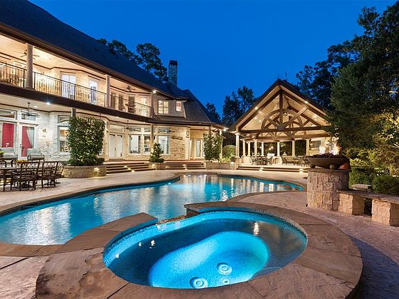 Rare buying opportunity to own this exceptional Bill Hughes custom home located in the sought after gated community of Palmer Crest in Cochran's Crossing! Drive into the paverstone circular drive and you are greeted by the extraordinary curb appeal with the entire exterior wrapped in limestone and a dramatic two story entry. Thoughtfully built with an eye for detail this home has it all, but the outdoor paradise is what sets this home apart from the rest! Private backyard overlooks hole #4 on the Palmer Course with spectacular water views. Over 1,100 sqft. of covered outdoor space with fire place, outdoor kitchen with gas grill and smoker, wall mounted heaters and ceiling fans make it perfect for year round use. Interior is open and inviting with wide open views from almost every room. Large Media Room with bar, whole house audio and lighting system, plantation shutters, recent paint, carpet and new ACs. Oversized four car garage and large motorcade complete this surreal estate!