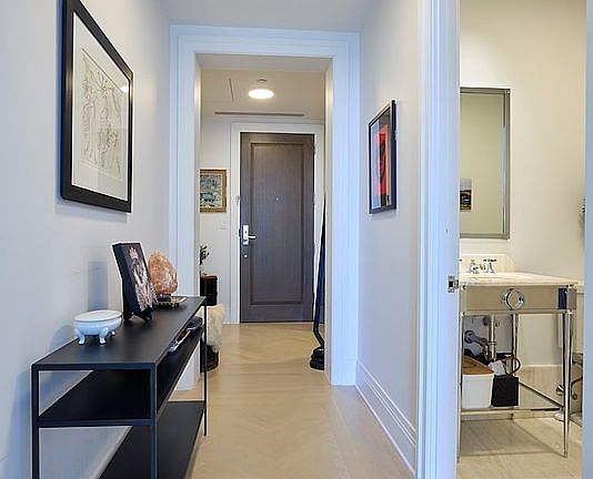 Expansive floor-to-ceiling windowsGracious bedroom suitePowder room for guestsLaundry closetWalk-in closetDressing areaFormal foyer