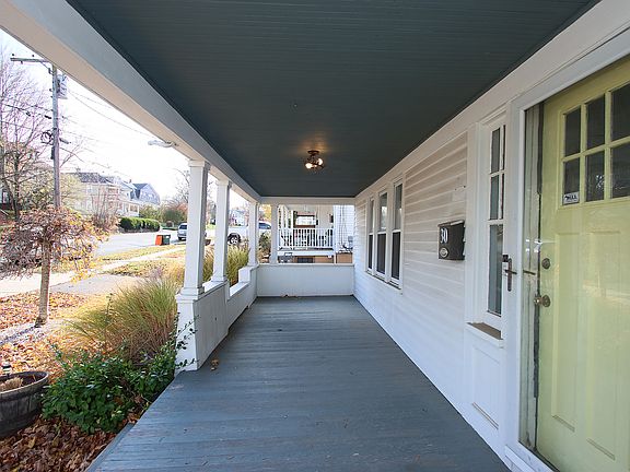 Centrally located near major amenities and transportation, this spacious three bedroom, one and one-half bath home offers exceptional comfort and functionality. The inviting front yard features charming flower beds for gardening enthusiasts and a wide covered porch great for relaxing. Inside, you'll find gleaming hardwood floors, high ceilings, and an open floor plan accented by French doors, a brick fireplace, and abundant natural light. The kitchen is well-equipped with ample cabinetry, generous counter space, a breakfast bar, dishwasher, and garbage disposal. A convenient powder room doubles as a laundry area. Upstairs, three generously sized bedrooms boast oversized closets for exceptional storage. The finished basement includes a large entertainment space with a built-in bar. Outdoors, enjoy an expansive deck, a fenced yard, and plenty of off-street parking. A standout feature is the oversized detached garage with two bay doors, an office, and its own gas furnace and electricity-ideal for business owners or entrepreneurs seeking a versatile workspace.