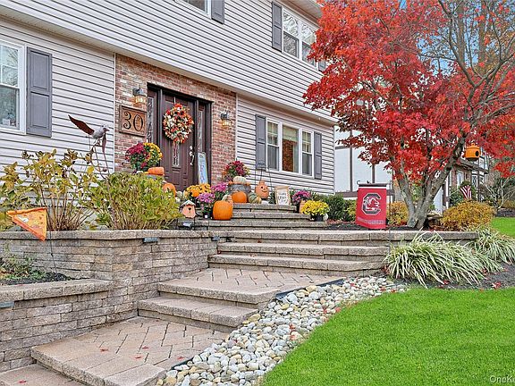 "PRETTY ON PELHAM" - At long last, the home you've been waiting for has arrived. Nestled on a quiet residential street in the heart of Nanuet - renowned for its Blue Ribbon, award-winning school, this beautifully maintained five bedroom residence offers nearly 2,800 square feet of comfort, character, and undeniable warmth, all just 35 minutes from NYC. From the moment you cross the threshold of 30 Pelham Avenue, the home unfolds with a serene, inviting energy: expansive yet intimate, refined yet deeply livable. It is the kind of place where life settles in effortlessly, where holidays stretch happily from room to room, and where laughter travels easily from the kitchen to the fireside. The main level sets the tone for both everyday living and inspired entertaining. Oversized, flexible spaces flow naturally from one to the next: an additional bonus room perfect for a dining alcove, a bar lounge, or a cozy reading nook; an updated, modern eat-in kitchen that anchors the home with its openness and connection to both the living and family rooms; and a highly convenient first floor bedroom and full bath ideal for guests or multi-generational living. Sunlight drifts in from every angle, enhancing the home's atmosphere of effortless comfort. Sliding doors off the kitchen extend the living experience outdoors, opening to a long deck that overlooks a fully fenced level 0.34 acre yard, a true backyard sanctuary. Here, summer days stretch into evening barbecues, little ones and pets roam freely on the open lawn, and nights end beneath the stars gathered around a warm fire pit... an oasis for memory-making. Upstairs, the tranquil primary suite offers a welcome retreat with its renovated bath and generous walk-in closet. Three additional well-proportioned bedrooms and a dual-sink hall bath provide thoughtful space for guests alike, with one bedroom perfectly suited as a home office or playroom. Below it all, a full unfinished basement offers yet another layer of possibility: an expansive space ideal for storage with incredible potential to evolve into additional bedrooms, a home gym, creative studio, or a spacious home office. Every corner reflects the meticulous care and updates the home has received, including a newer roof and impeccable curb appeal that elevates its presence from the moment you arrive. Conveniently located minutes from shopping, dining, major highways, public transportation, and just 35 minutes from the heart of New York City. More than a house, 30 Pelham Avenue is a home that feels both expansive and grounding, luxurious yet familiar. Experience it while you can as places this special rarely become available...
