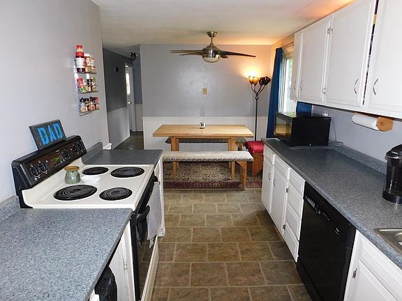 Country Living Can Be Yours! Tucked Away & Privately nestled on .3 Acres w/fenced in backyard you'll find this charming 3 bedroom Ranch. This sweet Easthampton home boasts comfort & privacy is perfect if you are just starting out or downsizing. Featuring (APO) a newer hot water tank 2016 & newer cost-effective wood stove in basement to heat your home in the winter! You'll find a cheerful & efficient kitchen that's open the cozy dining area, a charming living room, 3 good sized bedrms includes a large mbedrm w/stylish & easy care BRAND NEW laminate flooring. Plenty of natural light thru out the home & a skylight in the bathrm! There's lots of potential to finish the large full basement w/high ceilings for your tv/game room! Affordable & Adorable! Enjoy this summer in your very own peaceful retreat!
