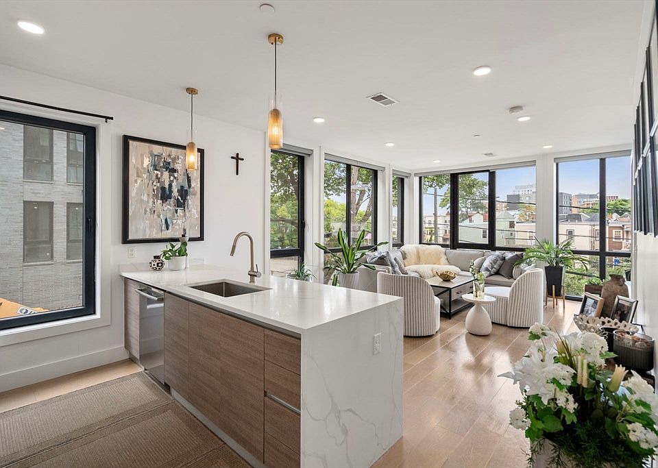 Sun splashed 2-bedroom, 2-bath corner condo offers one of the best layouts in the building, designed to maximize light, flow, and functionality. Walls of floor-to-ceiling windows drench the open-concept living and dining area with natural light, enhanced by custom blinds that let you set the perfect mood throughout the day. The chef’s kitchen features sleek, high-end appliances and a spacious peninsula counter-top, that seamlessly connects to the living room, perfect for both entertaining and everyday living. Both bedrooms are generously sized with ample closet space, complemented by in-unit laundry for convenience. Building amenities elevate your lifestyle with a fitness center, club room, and a stunning roof deck with a grill and sweeping city views. The unit also includes one garage parking space and a dedicated storage unit. Set in the heart of Allston, you’re steps from vibrant restaurants, shops, and public transportation.