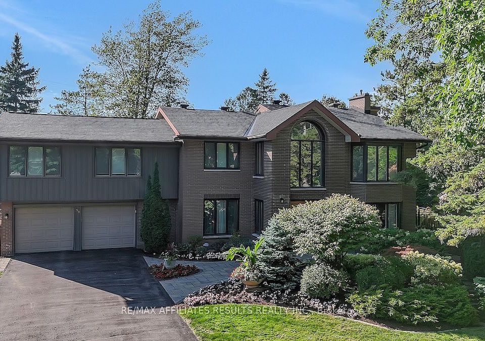STATELY ELEGANCE is the best way to describe this one of a kind beauty tucked in a corner on one of the nicest streets in Beaverbrook. Two artfully crafted additions make this one of the largest homes in the neighbourhood that truly must be seen to be appreciated. Manicured landscaping, mature trees and magnificent gardens provide a private park like setting. A lovely interlock walkway sets a welcoming tone as you approach the double front doors. Inside, a two-storey foyer introduces the home's generous proportions. Gleaming hardwood floors grace the main & second floors, Great sized main floor office for those working from home! The sunlit living room features a bay window, cozy gas fireplace and flows into the grand formal dining room with beautiful wood coffered ceiling, skylights and crown moulding. The updated kitchen boasts plentiful cupboards, granite counters and built-in appliances opening to a breakfast room and bright family room overlooking the serene rear yard. A full 3-piece bath and well-equipped laundry room with extra storage complete the main floor. Upstairs are four spacious bedrooms, including a grand primary suite with vaulted ceilings, walk-in closet, and ensuite with accessible shower and cozy heated floors. A second bedroom also features a walk-in closet, while a third enjoys its own bay window. Great potential for multi generational living here as the fourth bedroom is very spacious and offers a private ensuite with soaker tub and separate shower. The cleverly installed two person elevator serves all three levels and makes the stairs a non issue. The finished lower level is a retreat of its own, featuring a large rec room, built-in bar with banquette seating, wine cellar, den, ample storage, & a full bath. Bonus - Generac generator. Beaverbrook has long been sought after for its excellent schools, plentiful greenspace, great shopping, restaurants & proximaty to the 417. Don't miss your chance to make this exceptional property your own.