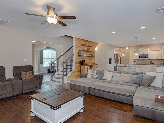Welcome home to the prettiest house on the block! This 4 bed, 2.5 bath gem invites you in with soaring ceilings and seamless flow for easy entertaining. The beautifully hand-crafted accent walls add warmth and character to the living area. Upstairs you'll find the luxurious owner's suite, complete with electric fireplace for cozy winter nights. The en suite bathroom features a soaking tub, spacious shower, and double walk-in closets. Additional bedrooms upstairs are generously sized, and don't miss the custom-built shelving in the laundry room for convenience and attractiveness. Outside, this gorgeous property offers so much more than relaxing on the game-day porch next to the saltwater pool. Enjoy the bounty of lovingly kept raised garden beds and blueberry bushes that produce bushels! With all of the features to love about this home, you'll never want to leave your Harris County oasis. Make your showing appointment before it's too late!