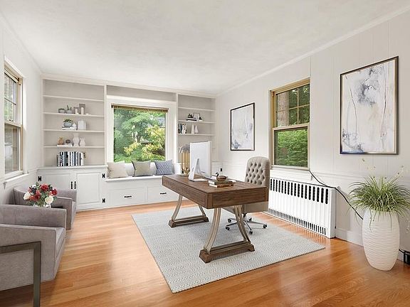 Set on an attractive residential street in a choice Bates School neighborhood, this delightful south facing English Cotswold was crafted in 1933 with elements of Arts & Crafts and Tudor styling. The home has maintained much original detail & character. A welcoming foyer with closet opens to a charming living room with fireplace and natural wood work. A formal dining-room leads to a large family room addition with built in bookcases. The kitchen features a breakfast nook and accesses a rear deck and level yard. The 2nd floor has two good sizes bedrooms, a full bathroom, and leads to a step up room with walk in closet and unfinished area that would make for a marvelous main bedroom. Lots of windows provide natural light. Amenities include attached garage, recently painted interior, refinished wood floors, basement workshop, attic storage & replacement windows. The property is in close to Boulder Brook Reservation, Rt. 9, and local shops. It has been well maintained by long time owner.