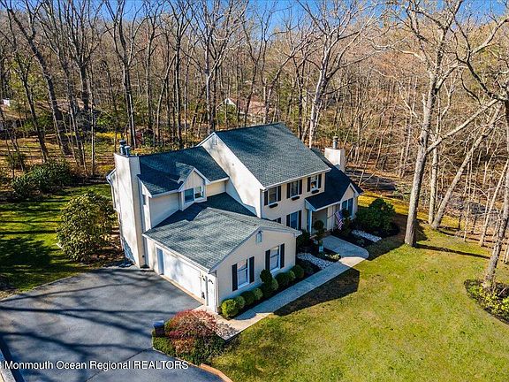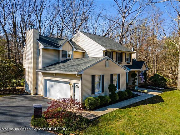 Home is where love resides, memories are created, friends always belong, and laughter never ends. Make this spacious 4 bed, 3.5 bath colonial w/attached two-car garage & oversized driveway overlooking Pine St in desirable Lincroft your home! Welcoming foyer leads to a formal LR w/ crown molding & a gas fireplace & a DR w/chair-rail molding, both w/ hardwood floors. The eat-in kitchen is impressive w/granite countertops, a large center island, SS appliances, & a slider leading to a large deck & patio overlooking a private yard. Great room located directly off of the kitchen is complete with wood burning fireplace. Also tucked away off the kitchen is a conveniently located large laundry room. Second level offers four ample sized bedrooms with the primary bedroom boasting a vaulted ceiling, skylight & full bath. Enjoy additional living & storage space in the finished basement including a bonus room, office, full bath, and two additional rooms that can be used as bedrooms. This home is perfect for entertaining & allows one to live in a country type secluded setting while also conveniently located near GSP, restaurants, & shopping! Truly a must see.