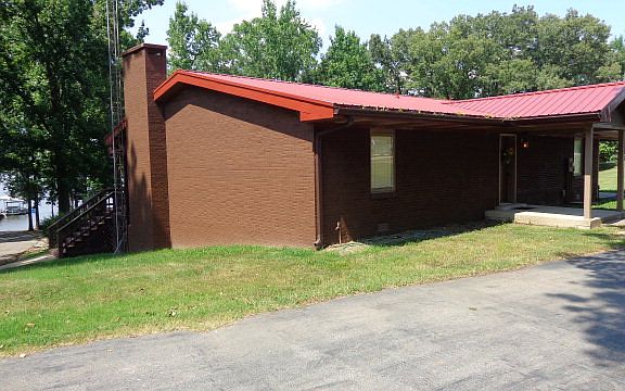 Waterfront brick home, lovely waterview of Kentucky Lake, superb boat dock with sun deck, fishing/cleaning station, 2 boat slips one with lift, dock has electric and water concrete walk way to boatdock, black top drive, gas log fireplace in living room,3 ceiling fans, gentle sloping lot, all furniture and appliances to stay,has large open and covered deck, new metal roof 2013,has access to black top boat ramp,c/h/a -2013, hall bath includes a large jet tub, two full baths with tile floors,This home is located just off HWY 79 fourlane and within walking distance of one of the best Private own boat dock and marina on Kentucky Lake. (See agent remarks)