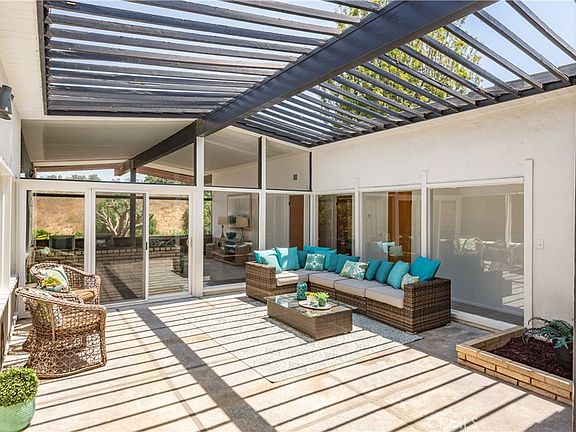 This mid-century modern house in Rolling Hills Estates has clean lines, open spaces and is loaded with windows allowing an abundance of light and integrates well with nature! It is a true gem! It has approximately 2,100 square feet of living space and features an open floor plan that enhances flow and functionality. There are 4 bedrooms, providing ample space for family or guests, and 2 baths. For the horse enthusiast, there is room for a barn and is close to horse trails. Recently renovated with new paint, new carpet, new flooring and new fixtures ensures the fresh and modern interior. Truly a tranquil location for relaxation and enjoyment!