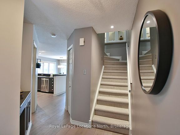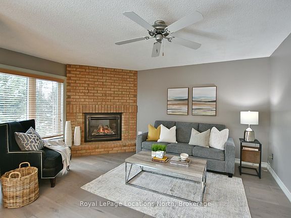 Welcome to Rupert's Landing, an extremely desirable waterfront community located in Collingwood on the pristine waters of Georgian Bay! Waterfront living at it's best! This resort-style development offers an exceptional lifestyle, you just can't go wrong with the available amenities!! A private marina, a recreation centre, tennis and pickleball courts, a pool, sauna, hot tubs, and a games room. You will never get bored again!! And this unit has so much to give, even a water view! It has been lovingly updated over the years, with beautiful new flooring, a reengineered stairwell with a built-in display case, and a large, exclusive storage closet unique to this condo. It also features an extra-large balcony with glass panels, gorgeous gas fireplace, new carpeting on the stairs, updated bathrooms, and a wonderful den off the primary bedroom, complete with its own private walkout balcony (the den could be converted back into a third bedroom). The list goes on and on! The location is ideal as well, with skiing, golfing, hiking, biking and swimming all literally on your doorstep. Take the trails into Collingwood town for dining and shopping, or access Blue Mountain hills within a 5 minute drive!! The best of what Southern Georgian Bay has to offer is just steps away! Ideal as a weekend retreat, or great rental for investors, even a lovely permanent home, you just can't go wrong with this property and price point! Enjoy the 4 season lifestyle to it's fullest at Rupert's Landing!!