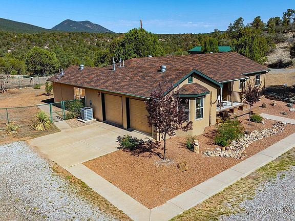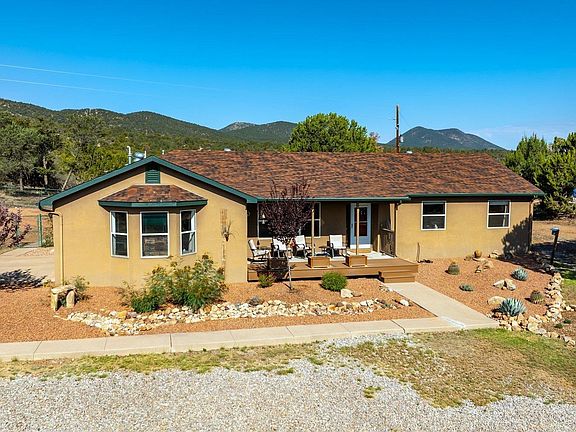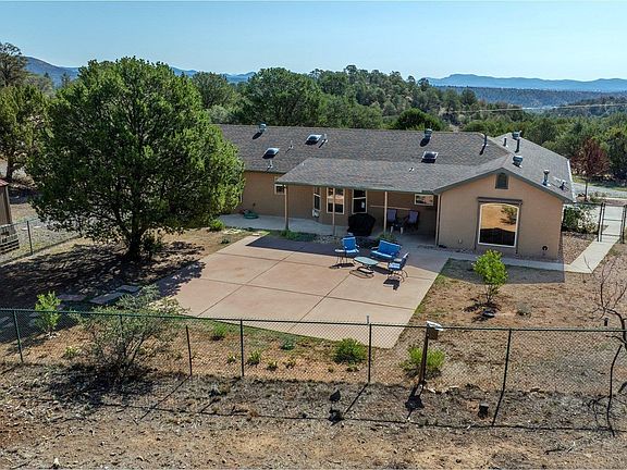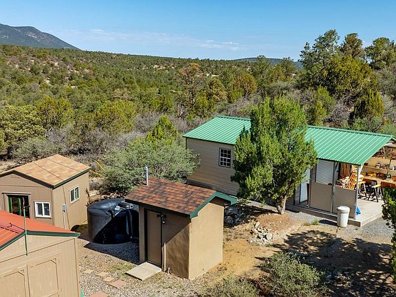 Imagine being minutes from town yet having direct access to the Gila National Forest—your 10 acres become hundreds! This 3 BD, 2 BA home offers an updated kitchen and baths with granite counters and alder cabinets. The open dining/living room and kitchen/den spaces flow easily for gatherings. Step outside to covered and uncovered patios, an open front deck, a fenced yard for pets, and stunning views where hummingbirds visit each summer. Cozy up to the gas stove on winter days or open the slider for a summer breeze. A new heating/cooling pump ensures comfort year-round. Extras include an attached garage, a new 18x25 insulated shop with ample power and 10x18 canopy, plus two portable, powered, and insulated buildings for storage or hobbies. Backing the forest, this property is ideal for horses and animals of all kinds, blending privacy, space, and freedom with the convenience of town nearby.