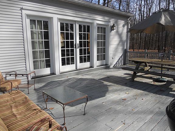 Nantucket Saltbox Cottage sitting on 5+ private wooded acres only 1 1/2 hours from NYC. This quality built home has beautiful hardwood floors and custom woodwork throughout the entire home. Kitchen is nicely equipped with stainless steel appliances and custom cherry cabinets with a food pantry. Off the kitchen is a light filled dining room and a family room with fireplace and custom French doors leading to a large private deck. First floor also has a nice size bedroom, large formal living room and a full bath. A beautiful hardwood staircase takes you to the second floor which has two large bedrooms and a full bath. There are walk-in closets and plenty of attic storage space. Basement has a wood stove, generator hookup and high ceilings with access to garage and first floor. It is just waiting to be finished off. Home is on one of the nicest country roads in Town of Clinton and a short distance to Rhinebeck, Hyde Park, Millbrook and the Taconic Parkway. Total taxes are $8,769. This is truly a warm beautiful country home on beautiful property in a great location. Great home! Great price!