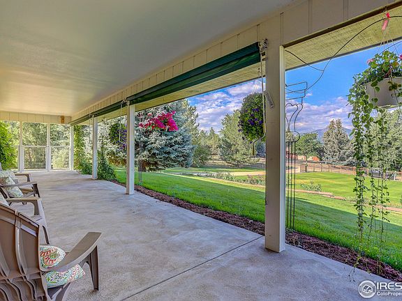 Premier property offering unparalleled views & secluded living on 1.49 acres. Views stretch across the front range. Gated entrance leads you into large motor court & circular drive. Welcoming, covered front porch is the perfect spot to savor Colorado sunsets. Immediately upon entering your eyes will be drawn to hickory flooring. Huge living & dining areas are separated by 2 sided fireplace & boasts new carpet. Chef's kitchen has been updated & features center island, gas range, granite countertops, & plenty of storage. Sunny breakfast nook w/wood stove makes for cozy ambience. Home office provides perfect work space w/backyard views. Two main level bedrooms have ensuite baths. One has been recently updated & is outfitted with radiant heat. Upstairs, secluded owner's suite offers unrivaled views framed by bright windows, a dramatic fireplace, & dual walk in closets. Tremendous possibilities & plenty of space to re-imagine the master bath. Additional bedroom & rec room, bathroom, & huge storage room on lower level. Surrounded by beauty: gardens, fruit trees, & the verdant landscaping are fed by well water.
