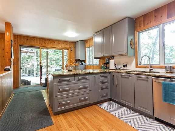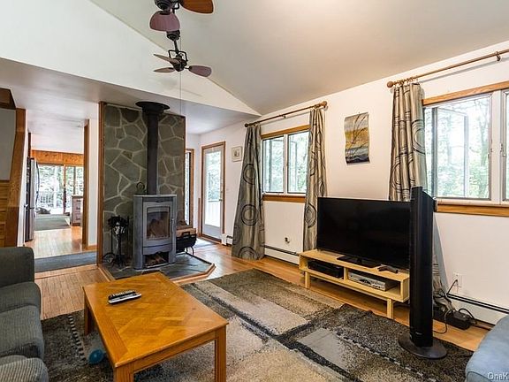 Unique European style home located in a secluded neighborhood of Garrison's Continental Village. Community offers lake rights ,clubhouse and sports courts. This home has a treehouse feeling and is designed with four levels, perfect for the new "work from home" lifestyle. Large eat-in kitchen with granite counter tops, 17 cabinets, oversized refrigerator, gas range, stainless appliances and wine cooler. Kitchen access to one of the four amazing deck areas in the rear of this home. Living room with vaulted ceilings and modern European free-standing wood burning fireplace.Step down to entertain in the expansive dining room. Three bedrooms with two full renovated baths and office or guest room. Level one is a large recreation/family room with door out to front patio overlooking the mature trees and garden. Spend your day's relaxing under the gazebo, evenings lounging by one of the two firepits or go back to nature on the upper lounge area. Commuters dream.... Close to hiking and bike trails.