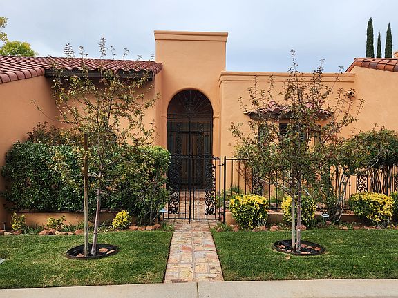 The many custom features include the wrought iron gate in the front entry garden, custom front door and the general