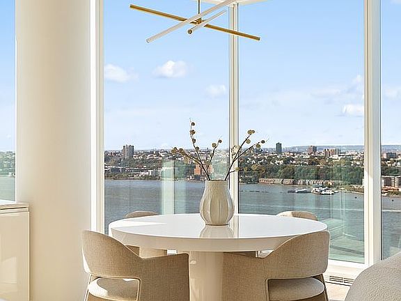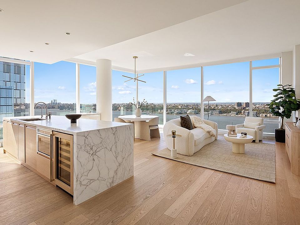 Perched above the Hudson River in one of Manhattan’s most architecturally significant developments, this A-line residence — the most coveted line in the building — offers a massive nearly 2,000 sq ft home with sweeping south- and west-facing corner exposures that capture both the Hudson River and the Manhattan skyline from every floor-to-ceiling window.