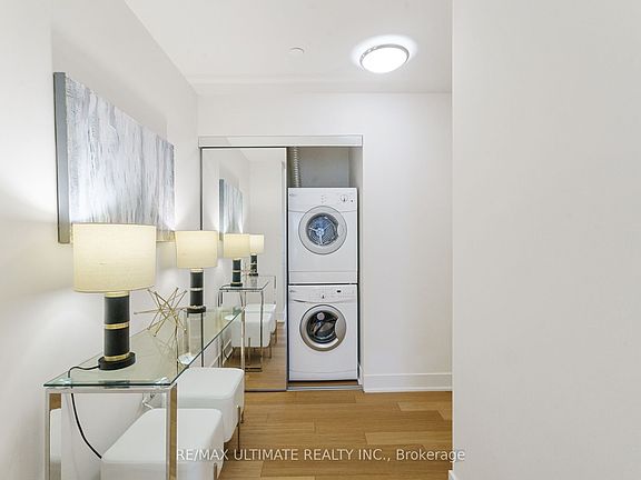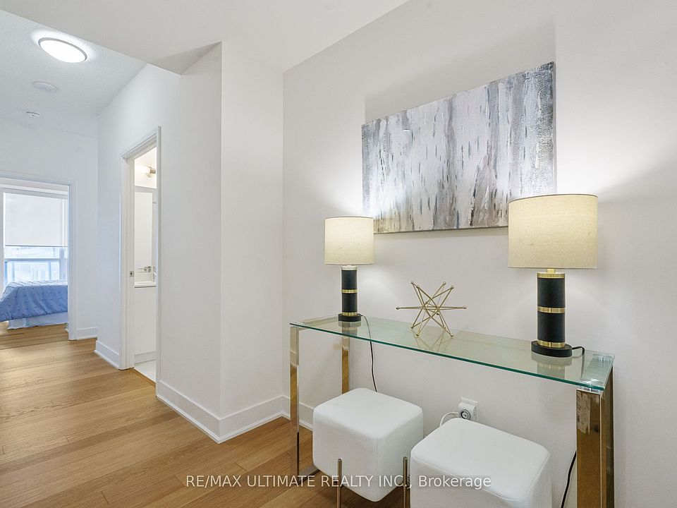 Original owner occupied and meticulously maintained! **Unit is empty. Photos include previously staged photos.**. Layout is perfect for privacy and separation. A great rental investment option with split layout. Builder upgrades and 9 foot ceilings. Floor-to-ceiling windows provide an abundance of natural light. Both bedrooms have mirrored closet doors. Primary has built-in organizers.The balcony spans the entire length of the unit. Rare extra large corner parking spot to accommodate larger vehicles and to navigate in and out. (P3 #C55). Locker located immediately beside parking (see photo). Minto 30 Roe, a LEED Certified project, received Gold level certification. Top notch amenities (24/7 concierge, gym, spin studio, yoga & pilates studio, fully equipped party room, outdoor patio with bbq...and more). Located in a highly ranked school district. Steps To T.T.C., LRT, shopping, library, restaurant/bars & parks. The perfect space for anyone at any age or any stage of life! See Floorplan attached. Do yourself a favour and go to the parking level to see for yourself the extra large and well placed parking space during your showing.