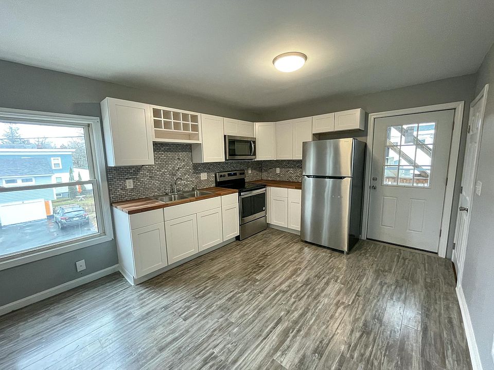 Recently renovated second-floor apartment located in Ferry Village in South Portland. Open living space boasts 3 bedrooms and 1 bathroom. This apartment has recently been renovated to include an all-new bathroom and an all-new kitchen with white cabinetry, butcherblock countertops, and stainless steel appliances. Each bedroom has a closet, with the primary bedroom featuring a walk-in closet. Heat pump in the living room area which provides AC and supplemental heat. Access to an unfinished basement with included washer/dryer and room for storage. 500ft from the South Portland Greenbelt Parkway which is perfect for jogging, walking your dog or going for a bike ride and only 1 mile from Willard Beach! Only 1/2 mile to Hannaford and the Waterfront Market area which has many great restaurants and shops to explore! Rent includes all utilities except for cable/internet. There is parking for up to 3 vehicles in the driveway. No smoking. Small, low impact pets are considered. Credit check and background check required. First Month's Rent and Security Deposit due at lease signing. Please contact Nick to schedule a showing! Lease length is negotiable. Rent includes heat, electricity, water, sewer, trash removal and lawn care. Tenants are responsible for cable/internet and parking spot snow removal. There is parking for up to 3 vehicles in the driveway. No smoking. Small, low impact pets are considered. Credit check and background check required. First Month's Rent and Security Deposit due at lease signing.
